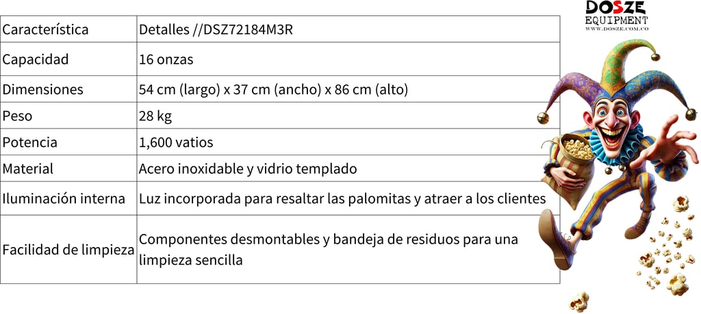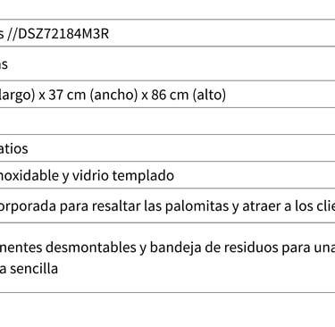 Vidrio de seguridad templado: Las ventanas de vidrio y la puerta proporcionan protección, robustez y una visión clara de la magia de las palomitas de maíz. El vidrio de seguridad templado resiste roturas, arañazos y temperaturas calientes.