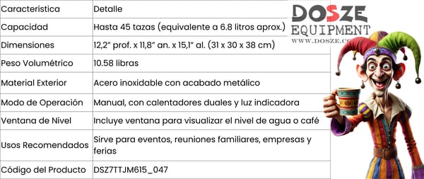 La urna de café Hamilton Beach de 45 tazas ofrece una preparación rápida, ideal para eventos grandes en Colombia, como reuniones, fiestas o ferias. Con un diseño metálico duradero y una ventana de nivel de agua, garantiza facilidad de uso y control preciso